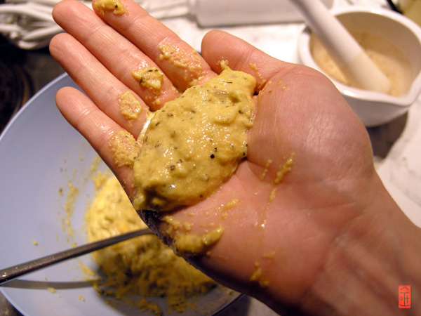 Omas Version: Butter, Ei, Brühe, Muskat, Zwiebeln, Knoblauch, Mutschelmehl, Salz und Pfeffer