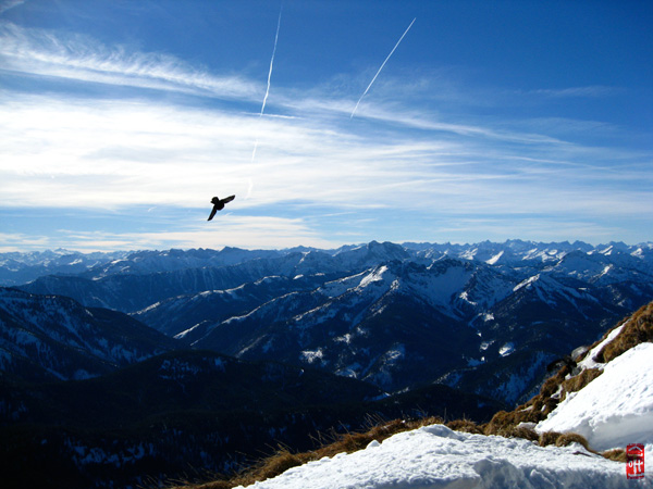 On the top of Rotwand(1884m) there were 2 birds flying just around the top, as if they were enjoying the wind-surfing.