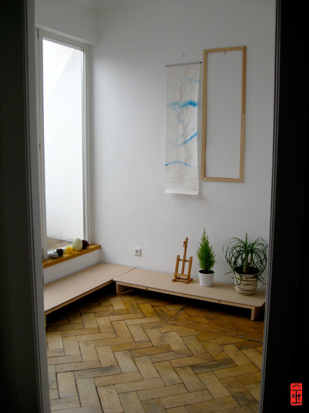 Well, that’s how our balcony room looks like. It’s too small to take a pic over the whole room. It’s for now lacking a seat cushion on the floor and my dream garden.;)