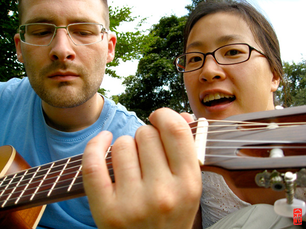 And on a sunny day we went to the park at the near of our home with the guitar.;)