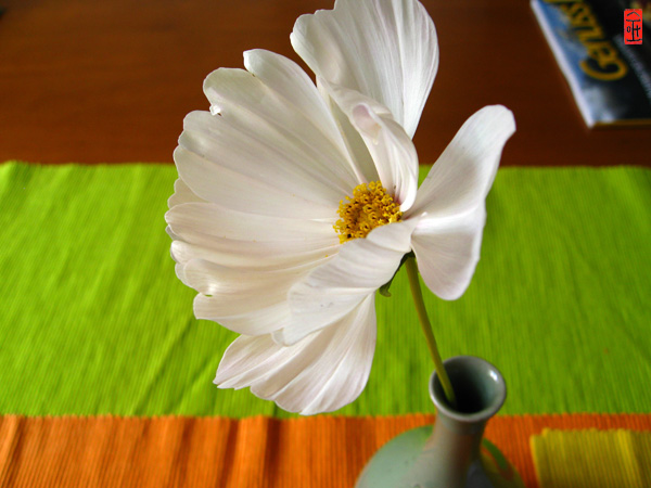 After such many rainy days in summer my garden has been totally ravaged.. most of my plants in such small pots couldn’t survive the flood.:( But one or two stalks haven’t given up yet, and this cosmos may be the only flower in my garden of this season. Tya..I may try next year having more trees than sensible flower plants.