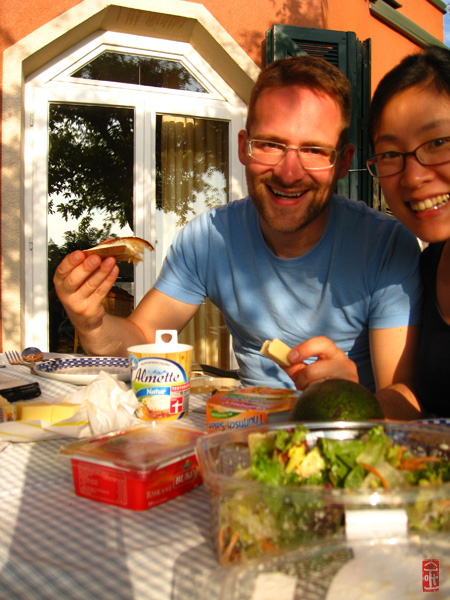 I didn’t really know yet that walking around can be such exhausting for me and every 30 minutes I was desperately looking for a toilette.:( After having some nap in the afternoon at pension we brought some foods from the supermarket and had dinner on the back yard of the pension. That was romantic, also pretty convenient! ๐