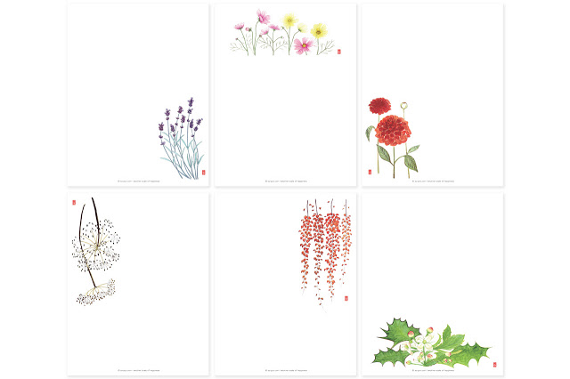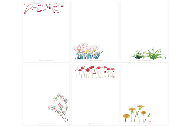 Items #2 and #3 are again letter writing paper sets with 12 seasonal flowers in size A4 and A5 including 12 white envelopes. The paper is same as the first item, 90g and has creamy white color.