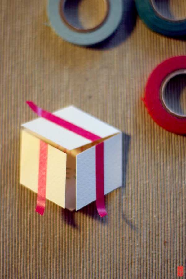 To be seemed more like 3 dimensional, I put some stripes on it as if it were wrapped like a present. And there’s also a reason behind, why I let the stripe longer on 3 other sides.