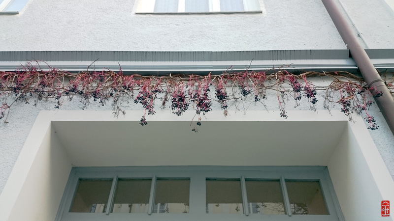 Oh, es gibt anscheinend die Efeu über dem Tor. Ich mochte immer besonders die Früchte von Efeu, die im Winter ganz hübsch und mit prächtiger Farbe zu sehen sind. Hatte auch öfter als Motiv meiner Bilder genommen. 😉 Aber was mir noch schön und auch als Standardbild einer Stadt aufgefallen waren, der Blick der Blumentöpfe auf dem Dachgeschoß von unten! 😀