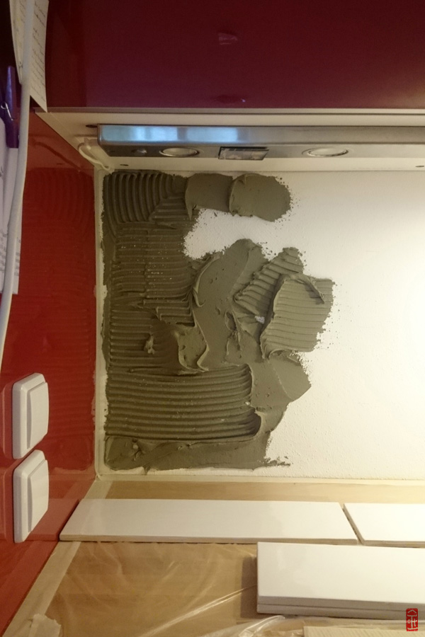 Endlich machte es einen Schritt weiter bei unserer Küche-Renovierung. 😉 Am Wochende haben wir die Rückwand der Küche gefliest.