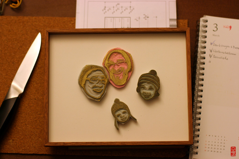 Natürlich nutzte ich die Zeit mit allein-sein voll aus und räumte weiter die Wohnung aus. Und schau, was ich da gefunden hab! Ein leeres Rahmen, das von mir gebastelt wurde. Wahrscheinlich hatte ich das aufgehoben, um irgend ein Bild fertig einzurahmen, als ich noch als Künstlerin tätig war…ach, die ‘old good days’.;-) Jetzt kann ich endlich die Stempels von uns einrahmen. :-))