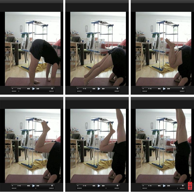 Ich habe endlich den Kopfstand geschafft, aber nur für 5 Sekunden lang. Ich will weiter üben, bis ich mindestens 1 Minute so halten kann. Die Schulter tun mir nicht mehr weh, dafür spüre ich große Belastung an Rücken und vor allem Angst. Aber es war wirklich geile 5 Sekunden mit Füße hoch und Kopf unten. :-))