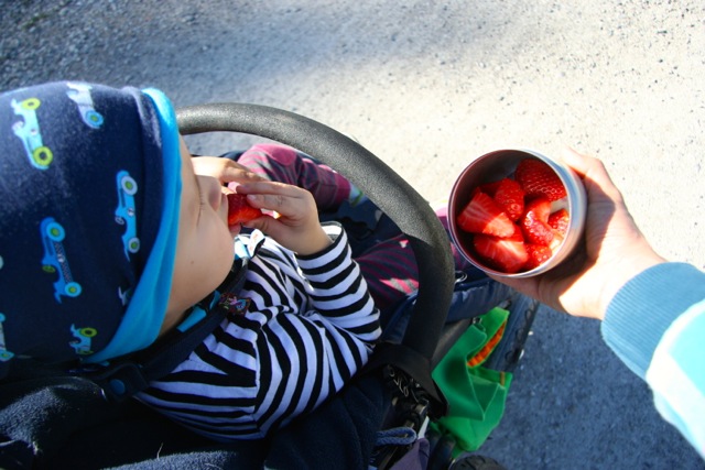 Fast! wie ein Sommertag! Sonne pur! Da kann alles nur so gut schmecken. Dieser Erdbeerliebhaber frisst die ganze Schale Erdbeere weg auf der Stelle. 😉