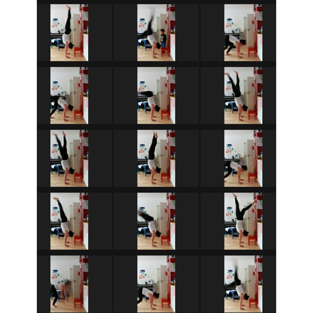 Most of people would take videos or pictures to catch the best presenting moment or performance, but for me it’s more like to motivate myself. Letting the camera shoot automatically in 10 seconds and trying again and again with handstanding. I can’t hold 10 seconds yet, not even get the alignment easily every time. But making the situation worse, there’s even a desire in me, ‘maybe this last!(but it came out probably 10th from 50th…) time I would make it..?! So, give you all, go!’ and the reality is, more greater than desire there’s the fear deep inside, fear from falling and hurting myself. To overcome all of these emotions and my level, I push myself to do again and again…until I suddenly have no fear, no desire. ‘Ach was, ist mir alles EGAL!’ (arg, whatever! I don’t care any thing!!) only my body moves and tries on and on. A-ha. There I go, I finally corrected and changed my gaze, soon the alignment comes out better. 😉