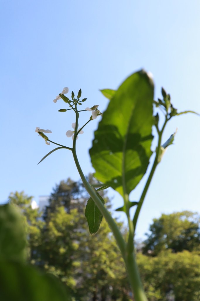 Korean heat radish. Probably one seed still left and survived in soil from last year.